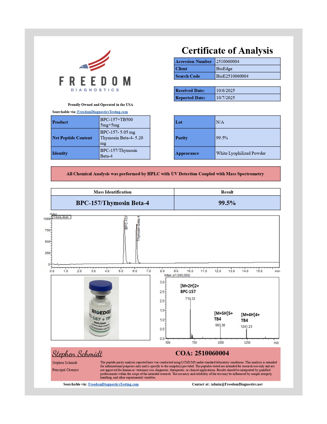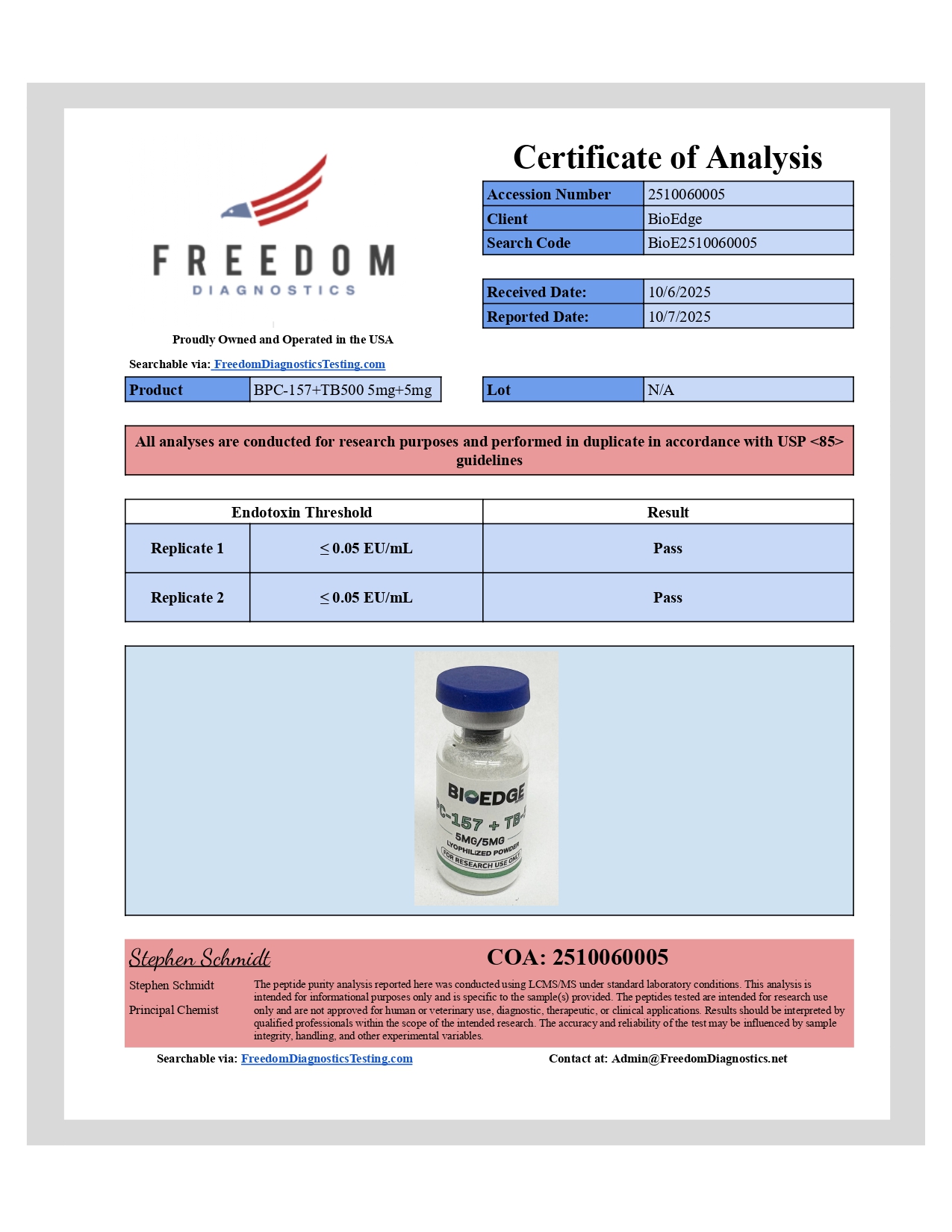 BPC-157 + TB-500 is supplied by BioEdge Research Labs exclusively for laboratory testing and in vitro research.