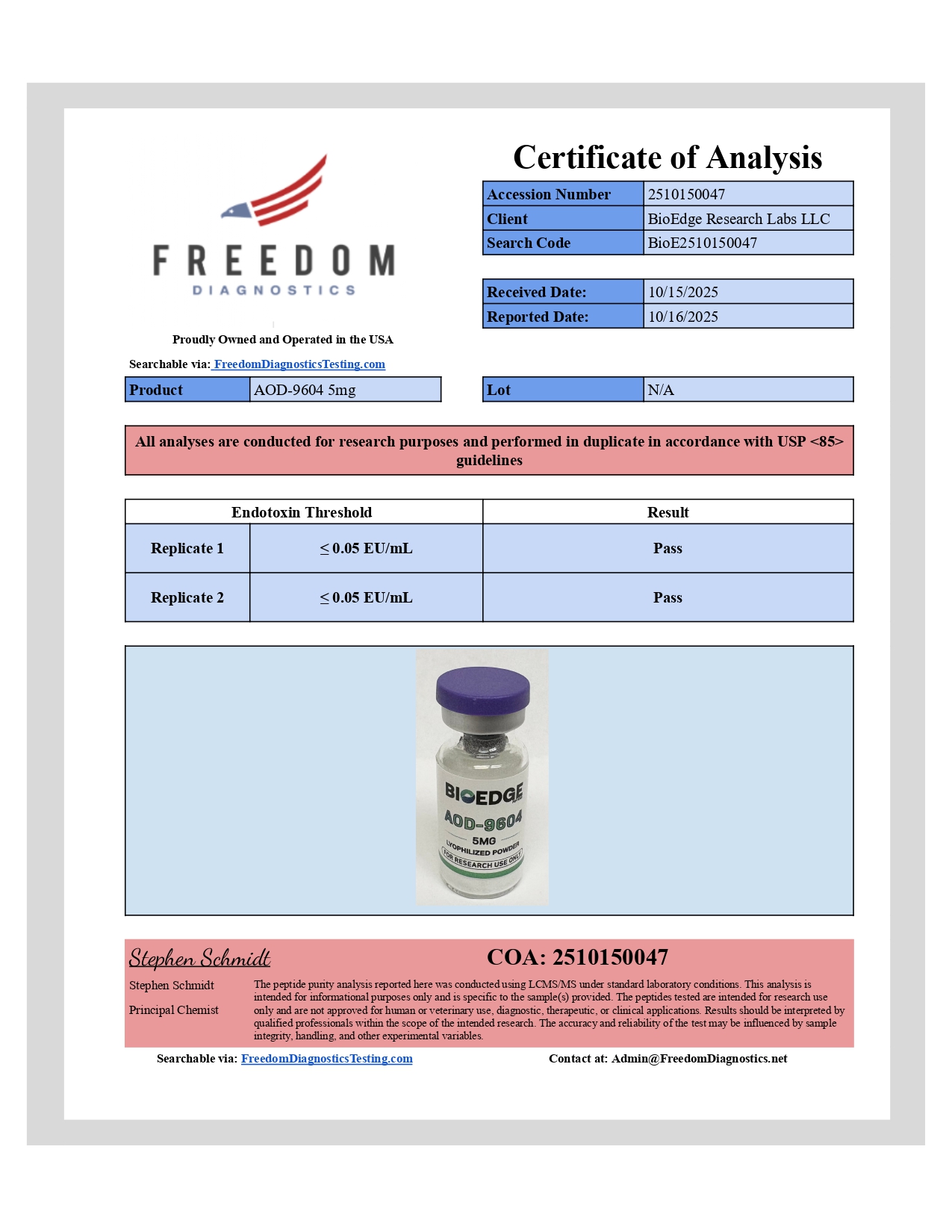AOD-9604 is supplied by BioEdge Research Labs exclusively for laboratory and in vitro research.