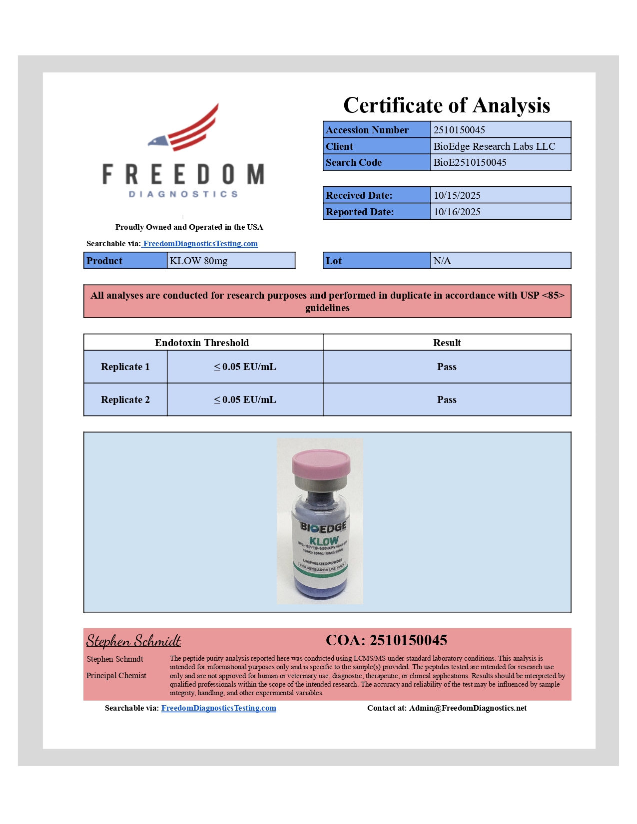 KLOW is supplied by BioEdge Research Labs exclusively for laboratory testing and in vitro research.