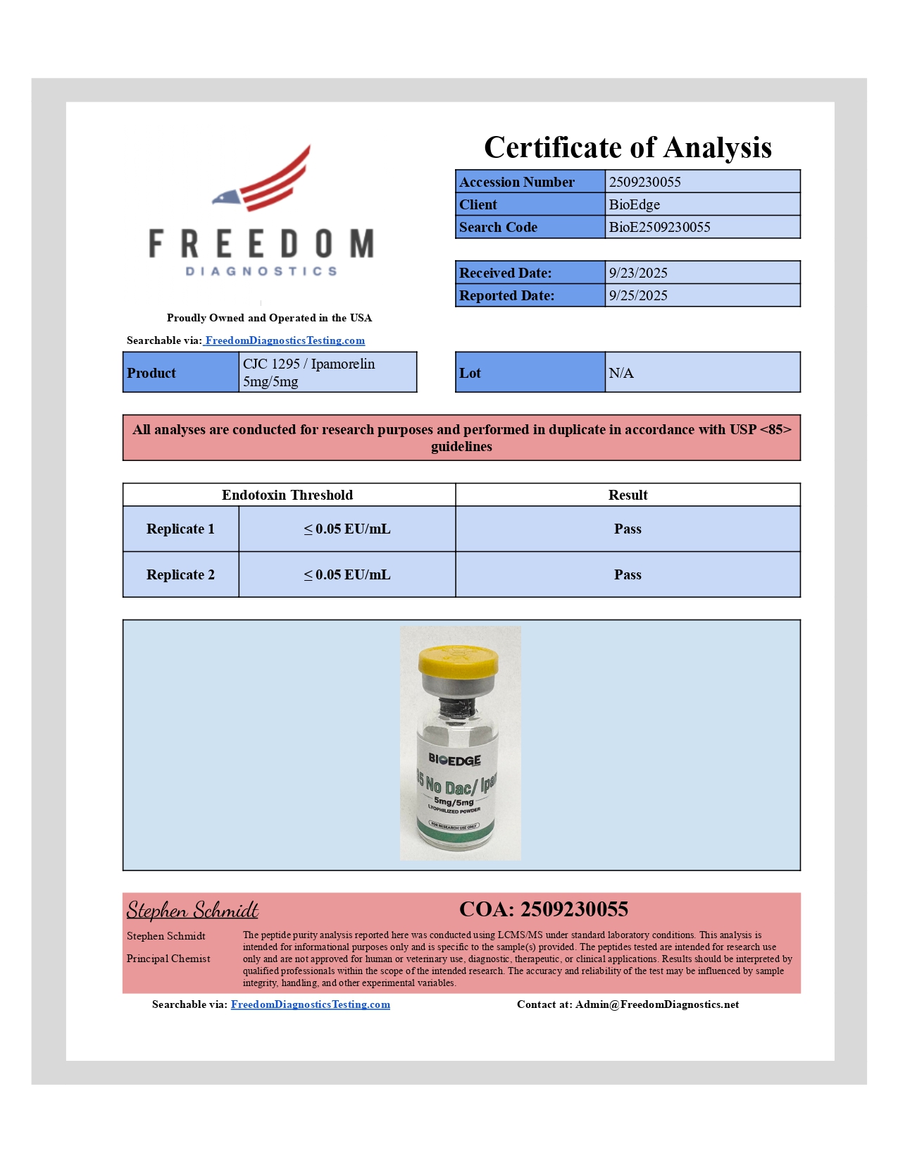 CJC-1295 / Ipamorelin from BioEdge Research Labs is provided exclusively for scientific and laboratory research.