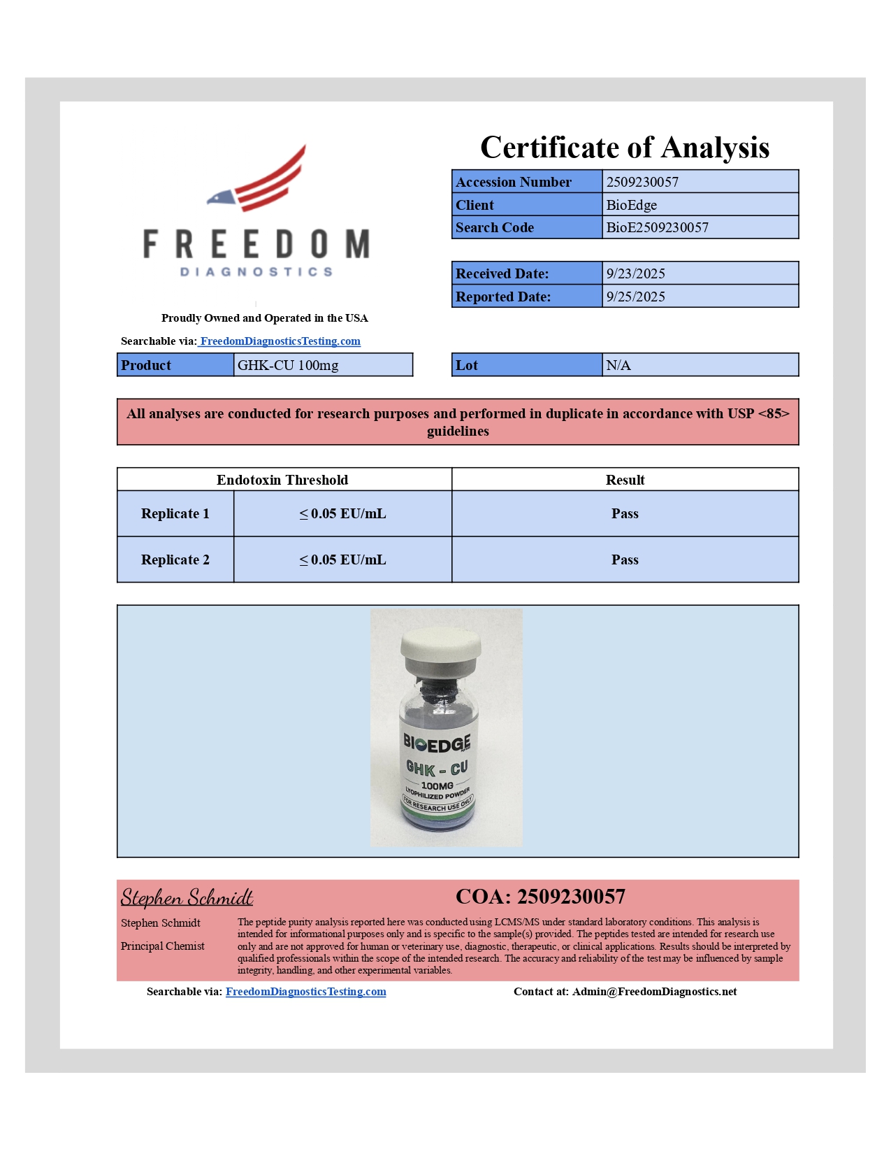 GHK-Cu from BioEdge Research Labs is distributed strictly for in vitro scientific and laboratory research.